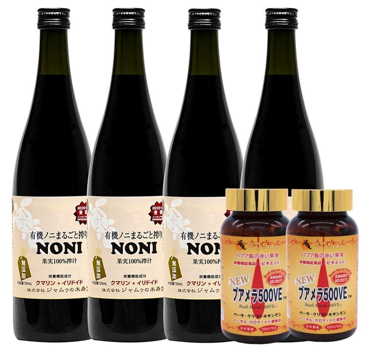 ノニ独特の貴重な中鎖脂肪酸の匂いを気にされない方は、厄年からの健康長寿のための有機ノニまるごと搾りを強くお勧めします。
