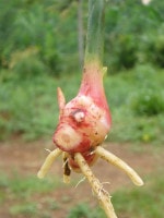 約1年栽培の赤ショウガ。長期保存ができないため、輸出用には直ちに乾燥させます。